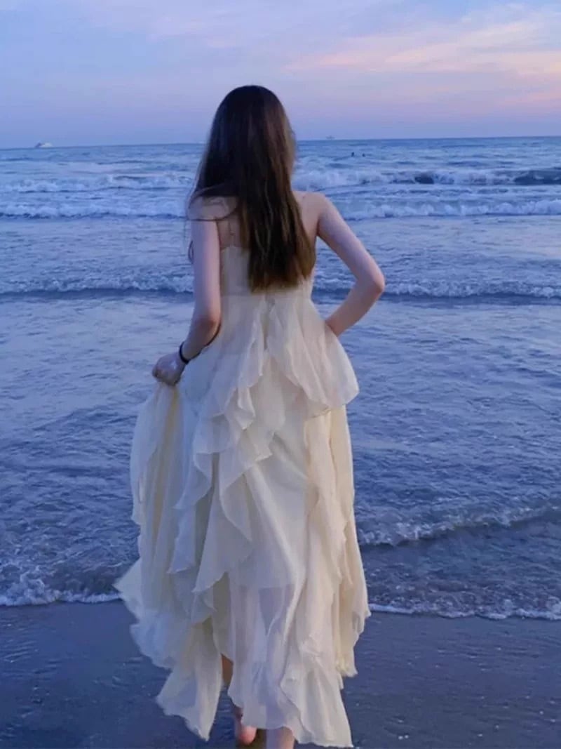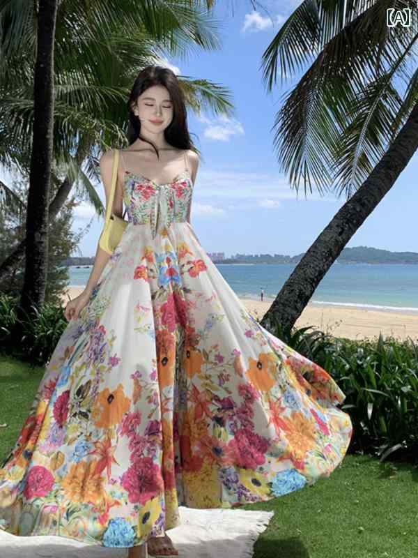 ロングスカートホワイトスリングドレス女夏ビーチ・ホリデービーチスカート
