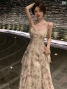 ワンピース レディース フランス レトロ ロング ドレス Vネック ホリデー ビーチ ドレス サスペンダー ドレス ハイエンド ランナウェイ プリンセス ドレス