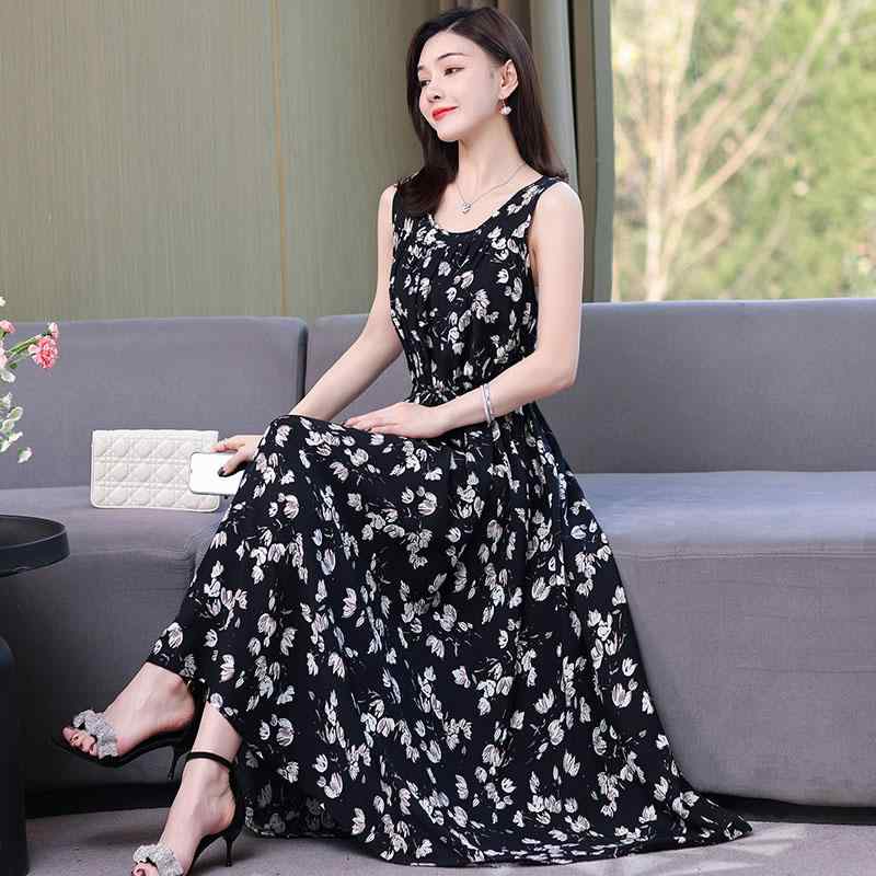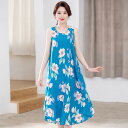 レディース ファッション 服 オシャレ カワイイ 女性用 シンプル 大人カワイイ サイズ 婦人服 ワンピース ノースリーブ ハイエンド コットン ドレス 夏 花柄 コットン ホリデー ビーチ ロング ドレス スリム