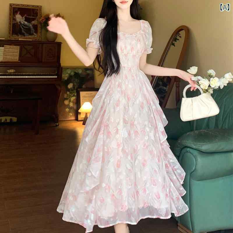 ティーブレイク フレンチ シフォン ドレス 夏 スーパー フェアリー シーサイド ホリデー ビーチ ドレス ワンピース ピンク