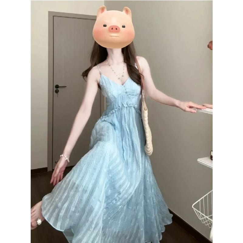 ロングスカートブルースリングドレス女夏2025新作ビーチ・ホリデービーチロングスカート