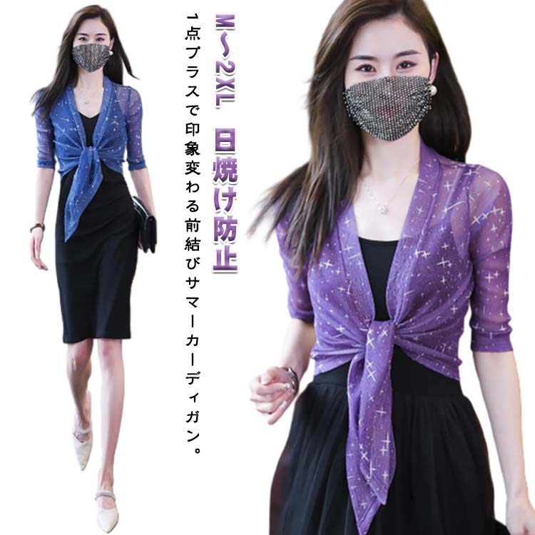 1点プラスで印象変わる前結びサマーカーディガン。さらっとした素材でこれからの季節に大活躍アイテム。フロントリボン結びになって深めのvラインがすっきりとした顔周りらしさをアピール。長く過ぎない袖丈だから涼しくて二の腕のしっかりとカバーできます。折りたためる柔らか素材なのでコンパクトサイズにできて持ち運びに便利!夏のキャミソールやノースリーブワンピースなどに欠かせない一着間違いなし。 サイズ M L XL 2XL サイズについての説明 表記の通り 素材 ナイロン 色 グレー ホワイト ブラック ブルー パープル バラレッド 備考 ●サイズ詳細等の測り方はスタッフ間で統一、徹底はしておりますが、実寸は商品によって若干の誤差(1cm〜3cm )がある場合がございますので、予めご了承ください。 ●商品の色は、撮影時の光や、お客様のモニターの色具合などにより、実際の商品と異なる場合がございます。あらかじめ、ご了承ください。 ●製品によっては、生地の特性上、洗濯時に縮む場合がございますので洗濯時はご注意下さいませ。 ▼色味の強い製品によっては他の衣類などに色移りする場合もございますので、速やかに(脱水、乾燥等)するようにお願いいたします。 ▼生地によっては摩擦や汗、雨などで濡れた時は、他の製品に移染する恐れがございますので、着用の際はご注意下さい。 ▼生地の特性上、やや匂いが強く感じられるものもございます。数日のご使用や陰干しなどで気になる匂いはほとんど感じられなくなります。