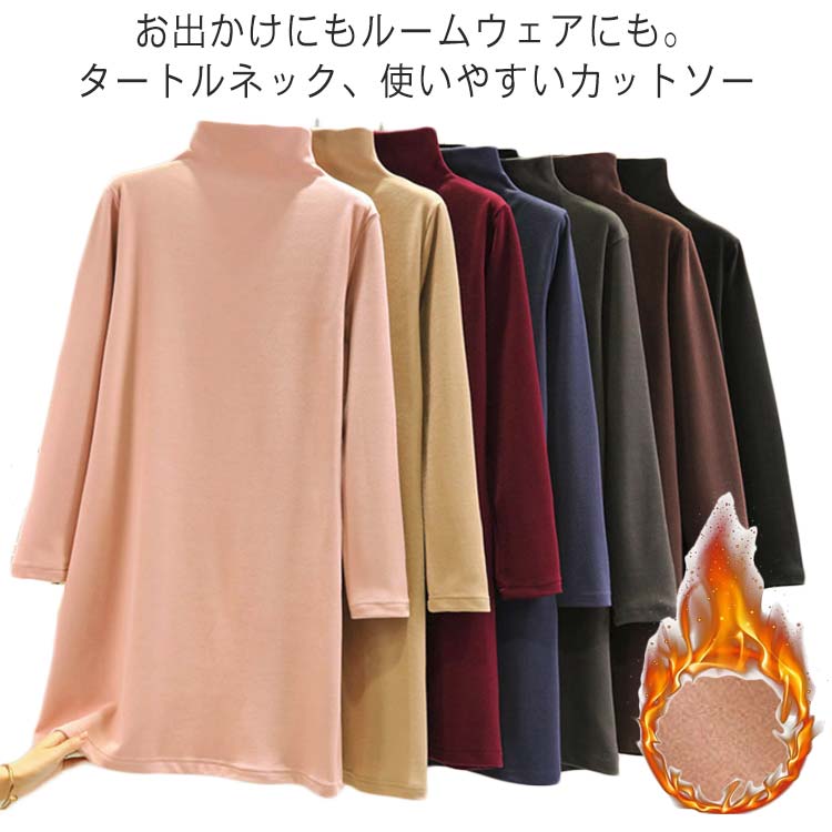 お出かけにもルームウェアにも。タートルネック、使いやすいカットソー両面ももこもこ生地で1枚でもあたたかく着ることができます。ハイネックで首元もあたたかです。長め丈でお尻も隠れ体型カバー。身幅にゆとりを持たせて体のラインを拾いにくいAラインシルエットに。柔らかく軽めの着心地がおうち時間のリラックスタイムにも着やすいです。カジュアルな印象に、デイリー使いにぴったりなアイテムです。 サイズ M L XL 2XL サイズについての説明 表記の通り 素材 ポリエステル 色 ブラック ベージュ ネイビー ピンク ダークブラウン ワインレッド ダークグレー 備考 ●サイズ詳細等の測り方はスタッフ間で統一、徹底はしておりますが、実寸は商品によって若干の誤差(1cm〜3cm )がある場合がございますので、予めご了承ください。 ●商品の色は、撮影時の光や、お客様のモニターの色具合などにより、実際の商品と異なる場合がございます。あらかじめ、ご了承ください。 ●製品によっては、生地の特性上、洗濯時に縮む場合がございますので洗濯時はご注意下さいませ。 ▼色味の強い製品によっては他の衣類などに色移りする場合もございますので、速やかに(脱水、乾燥等)するようにお願いいたします。 ▼生地によっては摩擦や汗、雨などで濡れた時は、他の製品に移染する恐れがございますので、着用の際はご注意下さい。 ▼生地の特性上、やや匂いが強く感じられるものもございます。数日のご使用や陰干しなどで気になる匂いはほとんど感じられなくなります。