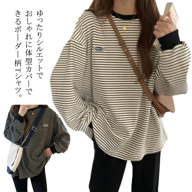Tシャツ レディース ボーダー 長袖 カットソー プルオーバー ビッグサイズ オーバーサイズ ロンT トップス ゆったり 大きいサイズ 柔らか 薄手 カジュアル 春 秋 冬 送料無料