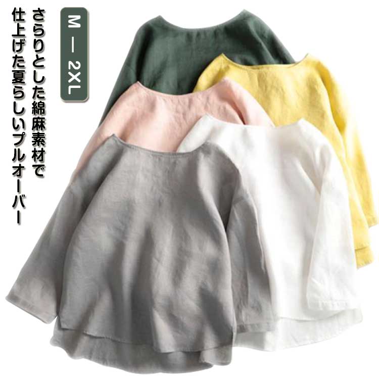さらりとした綿麻素材で仕上げた夏らしいプルオーバー綿麻素材を使い、通気性が良く快適な着心地♪ゆったりとしたシルエットで、着るだけでこなれた雰囲気に。前後に差があるゆったりシルエットなのでハイウエストのボトムスやスカートとよく似合います! サイズ M L XL 2XL サイズについての説明 表記の通り 素材 綿麻 色 ライトピンク グレー ホワイト イエロー グリーン 備考 ●サイズ詳細等の測り方はスタッフ間で統一、徹底はしておりますが、実寸は商品によって若干の誤差(1cm〜3cm )がある場合がございますので、予めご了承ください。 ●商品の色は、撮影時の光や、お客様のモニターの色具合などにより、実際の商品と異なる場合がございます。あらかじめ、ご了承ください。 ●製品によっては、生地の特性上、洗濯時に縮む場合がございますので洗濯時はご注意下さいませ。 ▼色味の強い製品によっては他の衣類などに色移りする場合もございますので、速やかに(脱水、乾燥等)するようにお願いいたします。 ▼生地によっては摩擦や汗、雨などで濡れた時は、他の製品に移染する恐れがございますので、着用の際はご注意下さい。 ▼生地の特性上、やや匂いが強く感じられるものもございます。数日のご使用や陰干しなどで気になる匂いはほとんど感じられなくなります。