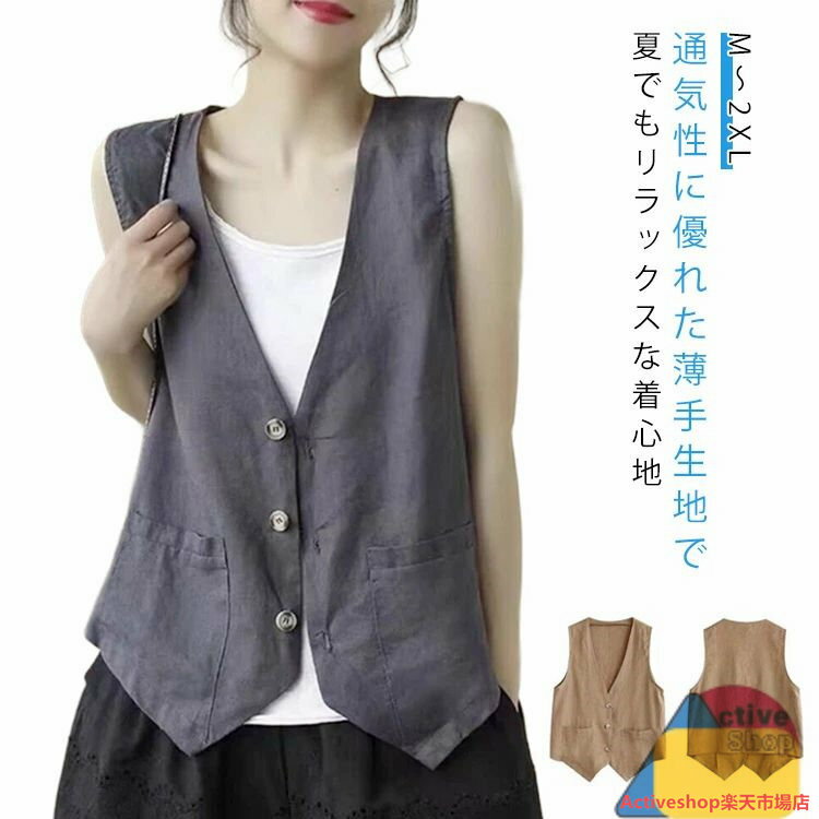 レディース 麻 薄手 春夏 サマージャケット ゆったり サマーベスト ショート ジレ チョッキ 重ね着 ナチュラル リネンベスト レディースベスト 夏ベスト ベスト 無地 薄手 トップス シニア オフィス ゴルフ 普段着 可愛い 春夏