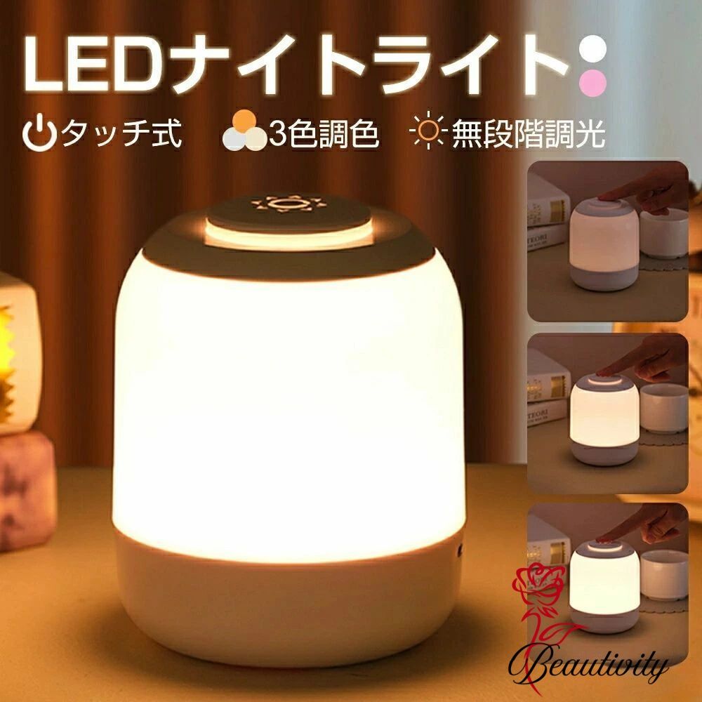 ナイトライト かわいい ナイト ライト おしゃれ Type-C 充電式 授乳ライト 赤ちゃん 子供部屋 明るさ調整 3色調色 小さい 置き型 LED タッチライト コードレス 夜間授乳 ベッドサイドランプ スタンド ベビー 寝かしつけ 睡眠 間接照明