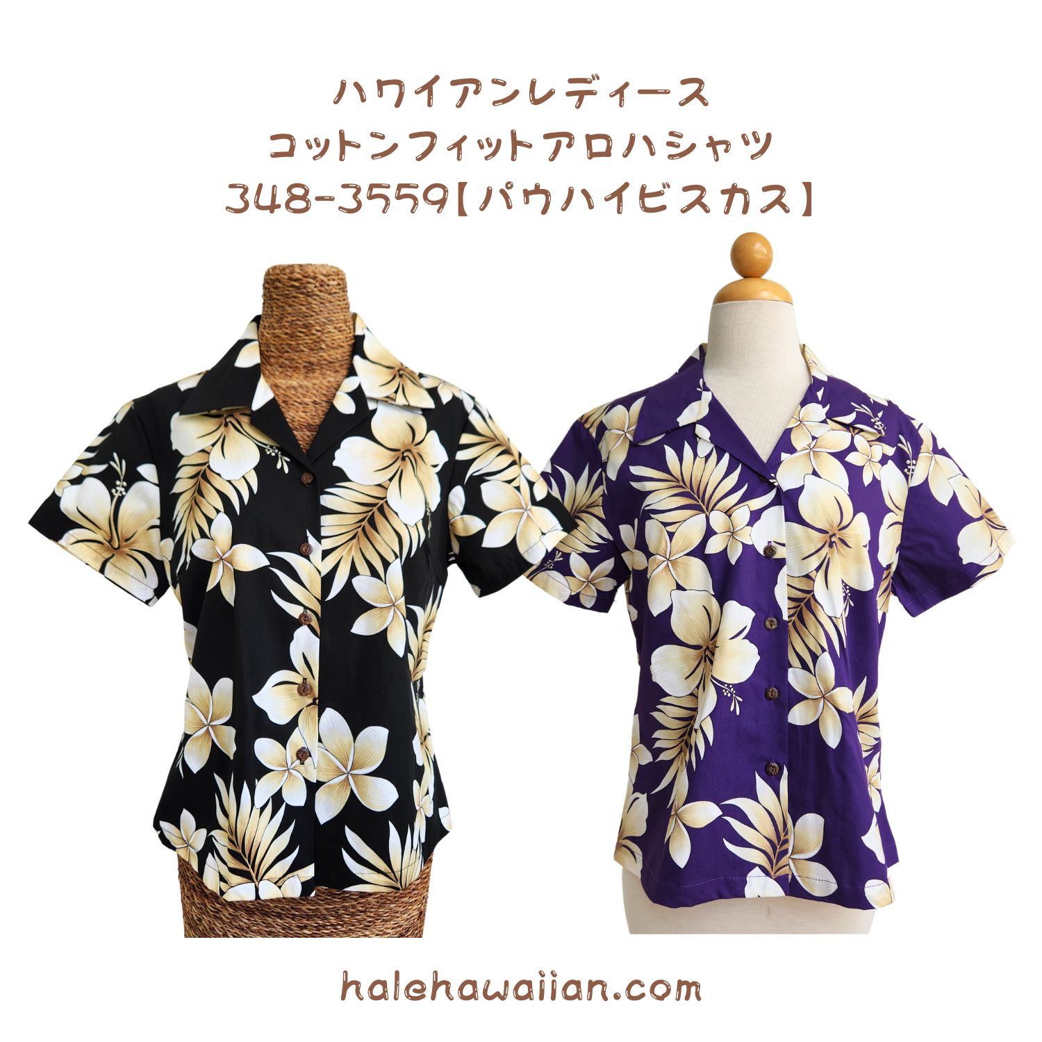ハワイアン レディース コットン フィット アロハシャツ 348-3559【 パウ ハイビスカス 】