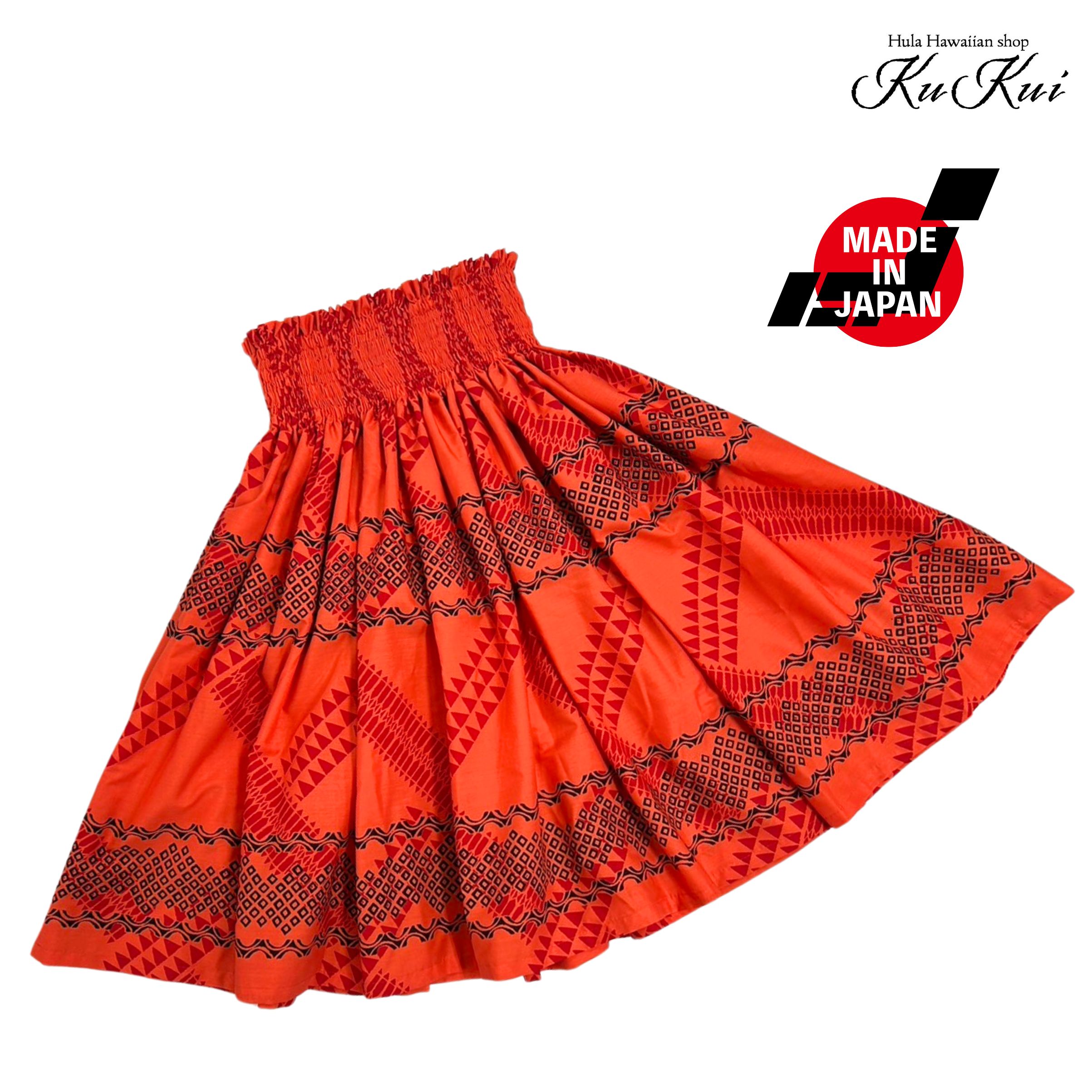 送料無料 パウスカート KuKui 丈指定可能 スカート パウ レディース フラダンス 衣装 ハワイ ハワイアン ハワイアンファブリック レッド 赤 タパ