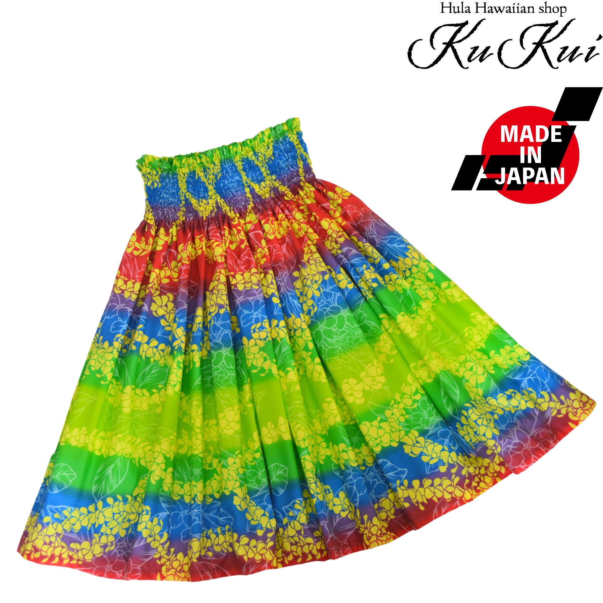 送料無料 パウスカート KuKui 丈指定可能 スカート パウ 822 レディース フラダンス 衣装 ハワイ ハワイアン ハワイアンファブリック グリーン ブルー 赤 レッド 緑 青 グラデーション 日本製