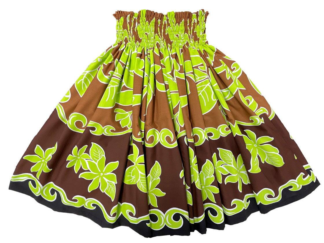 送料無料 パウスカート KuKui 丈指定可能 スカート パウ 760 レディース フラダンス 衣装 ハワイ ハワイアン ハワイアンファブリック 茶色 グリーン 黄緑 ティアレ タヒチアン 日本製