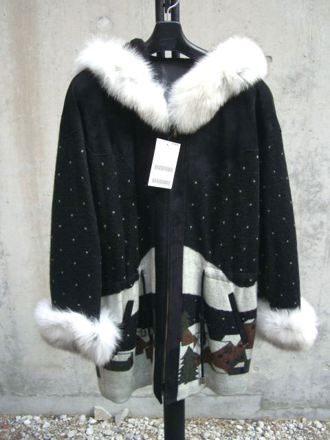 フォックス ファー & ピッグ スエード レザー トリミング ニット ハーフコート メンズ ブラック 送料無料 ギフト プレゼント