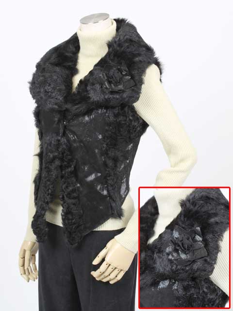 ラビット ファー ライナー ピッグ スエード ベスト ブラック 送料無料 レディース ギフト プレゼント