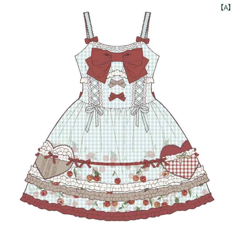 ロリータ ドレス コスプレ サウス シティ チェリー ショップ JSK あり ドレス スイート ウエスト スリミング aライン プリンセス パフィー ショート スカート バン ピッグ