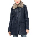 全7サイズ! [Women's Faux Fur Shearling Pigskin Genuine Leather Duffle Coat] ウィメンズ フェイクファー ムートン ピッグスキン ジェニュインレザー ダッフルコート! レディース 女性用 本革 豚革 革ジャン ダークグレー ボア フード アウター バイクに!