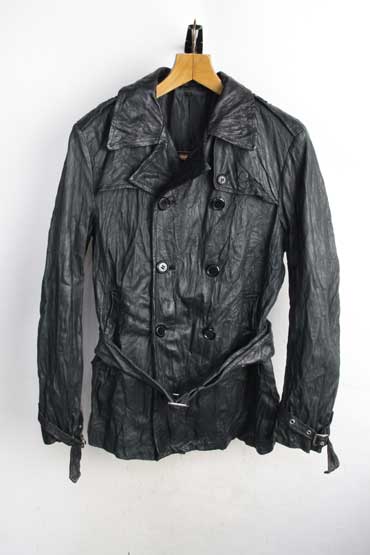 【商品説明】VEUVET GLOVEピッグスキン(豚革)レザートレンチコートコート。色は黒です。革は柔らかみのある豚革です。細身のキレイなシルエットです。雰囲気ある1着です!【サイズ】表記【M】Lady’s合わせです。《詳細》着丈(前)74cm/(後ろ)66cm、身幅46cm、肩幅43cm、袖丈61cmです。【状態】全体的に使用感があります。肩のボタン1個交換。ご使用のブラウザーにより、多少の色の違いが生じる場合があります。UsedVEUVET GLOVEレザートレンチコートコート 細身のキレイなシルエットです!! 1. 色は黒です。 2. 肩のボタン1個交換。 3. 袖先部分です。 4. 袖&ポケット部分です。 5. インナーです。 6. タグです。