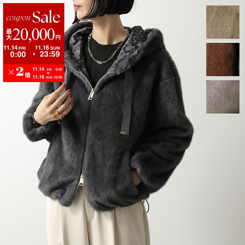 【11/14-11/16限定・最大2万円OFFクーポン配布中】HERNO ヘルノ ファージャケット GI000318D 12739 レディース エコファー グログランリボン フード付き ムートン ボア ショート丈 カラー4色