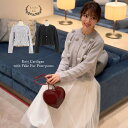 手洗い可 ニット カーディガン レディース オフィス きれいめ かわいい 秋冬 ファー グレー 黒 ジョイントスペース フェイクファー ポンポン付き ニット カーディガン Liala×PG 全2色|lpg441-2052【1】