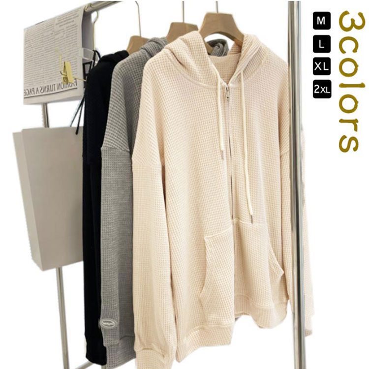 送料無料 アウター パーカー ジップアップ ワッフル生地 フード付き レディース 大きいサイズ 長袖 着回し ミドル丈 男女兼用 ユニセックス 春 夏 秋 着痩せ ゆったり オーバーサイズ 春服 UVカット カジュアル 通勤