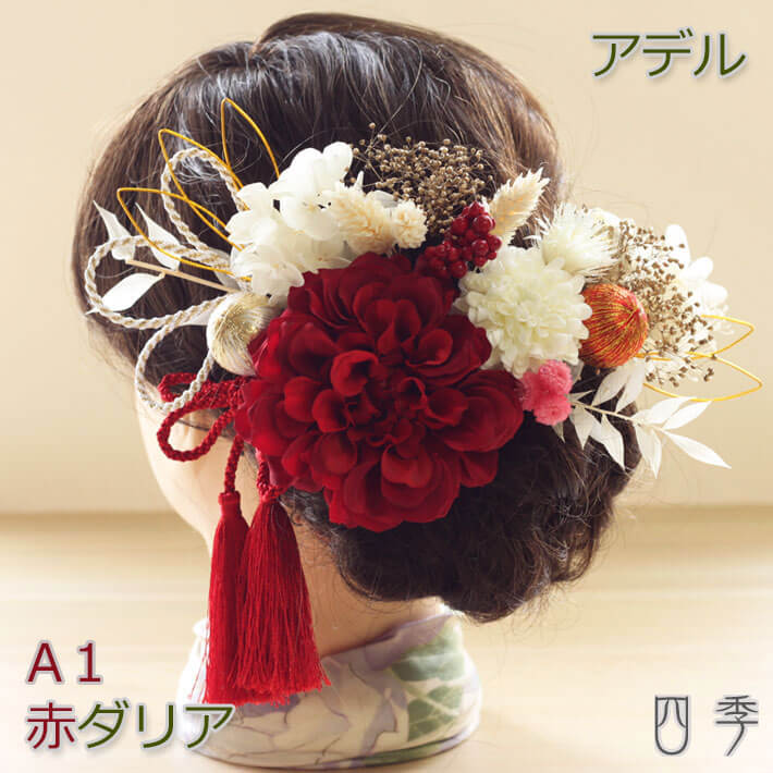 髪飾り 成人式 ダリア 赤 アデル A1 和装 白無垢 色打掛 振袖 袴 造花 ヘッドドレス ウェディング 結婚式 和 和婚 ブライダル ヘッドアクセ ヘッドアクセサリー 花嫁 和風 卒業式 謝恩会 花飾り カスミソウ プリザーブドフラワー ドライフラワー K_0422a