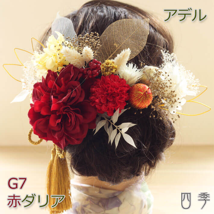 髪飾り 成人式 ダリア 赤 アデル G7 和装 白無垢 色打掛 振袖 袴 造花 ヘッドドレス ウェディング 結婚式 和 和婚 ブライダル ヘッドアクセ ヘッドアクセサリー 花嫁 和風 卒業式 謝恩会 花飾り カスミソウ プリザーブドフラワー ドライフラワー K_0423g