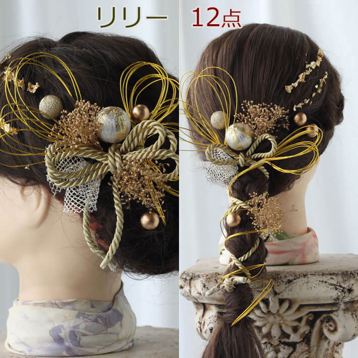 髪飾り 水引 成人式 リリー BE 2色 卒業式 組紐 紐 金箔 金 銀箔 ゴールド シルバー ドライフラワー 花 プリザーブドフラワー 白 ヘアアクセサリー ヘアアレンジ 成人式前撮り 前撮り 振袖 袴 着物 和装 色打掛 結婚式 ブライダル 花嫁 ヘッドドレス かすみ草 K_449BE