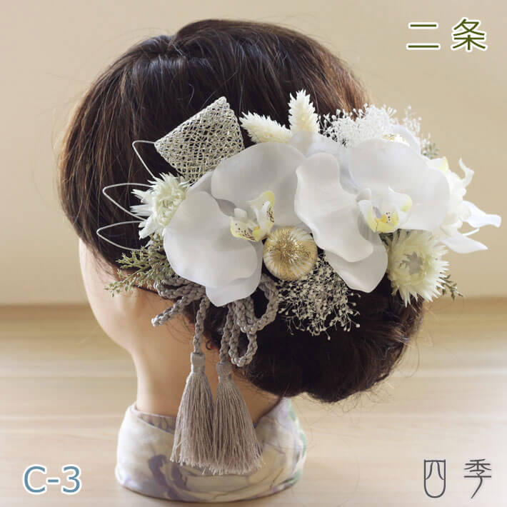 成人式 髪飾り 胡蝶蘭 二条 C-3 ヘッドドレス プリザーブドフラワー かすみ草 ドライフラワー 結婚式 白無垢 和装 ホワイト 神前式【送料無料】K_0413c