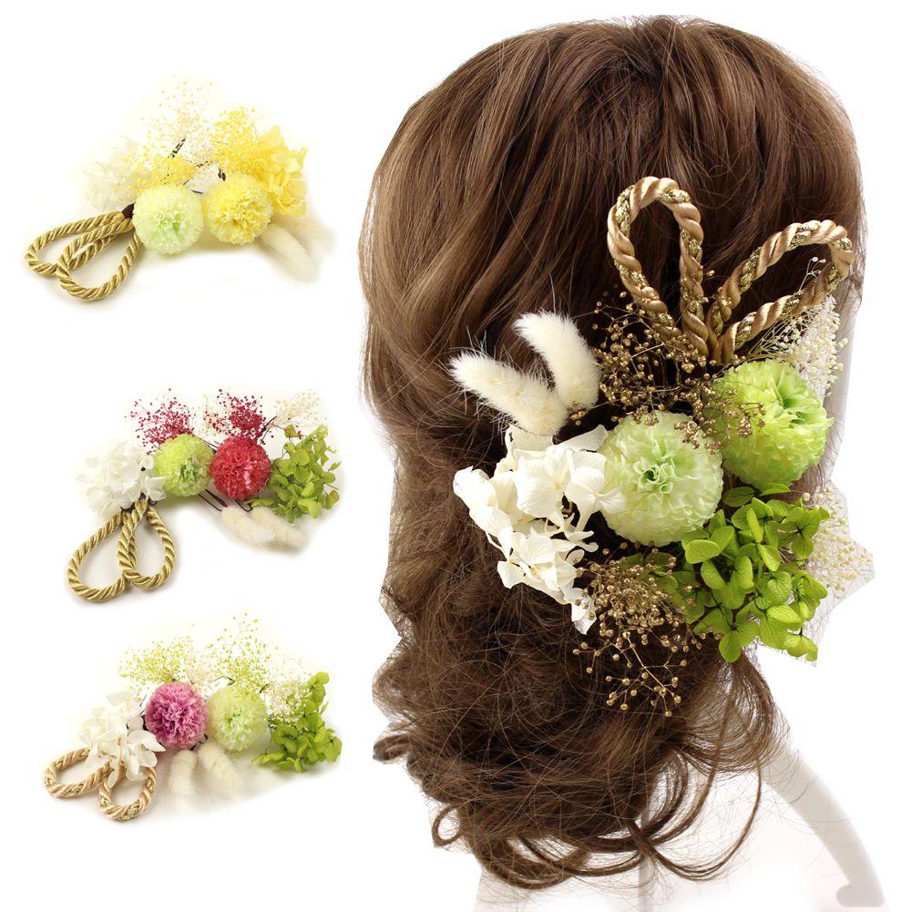 成人式 髪飾り レア 3色 水引 マム ゴールド プリザーブドフラワー 和装 白無垢 色打掛 振袖 袴 造花 ヘッドドレス ウェディング 結婚式 和 和婚 ブライダル ヘッドアクセ ヘッドアクセサリー 花嫁 和風 花飾り カスミソウ K_0480