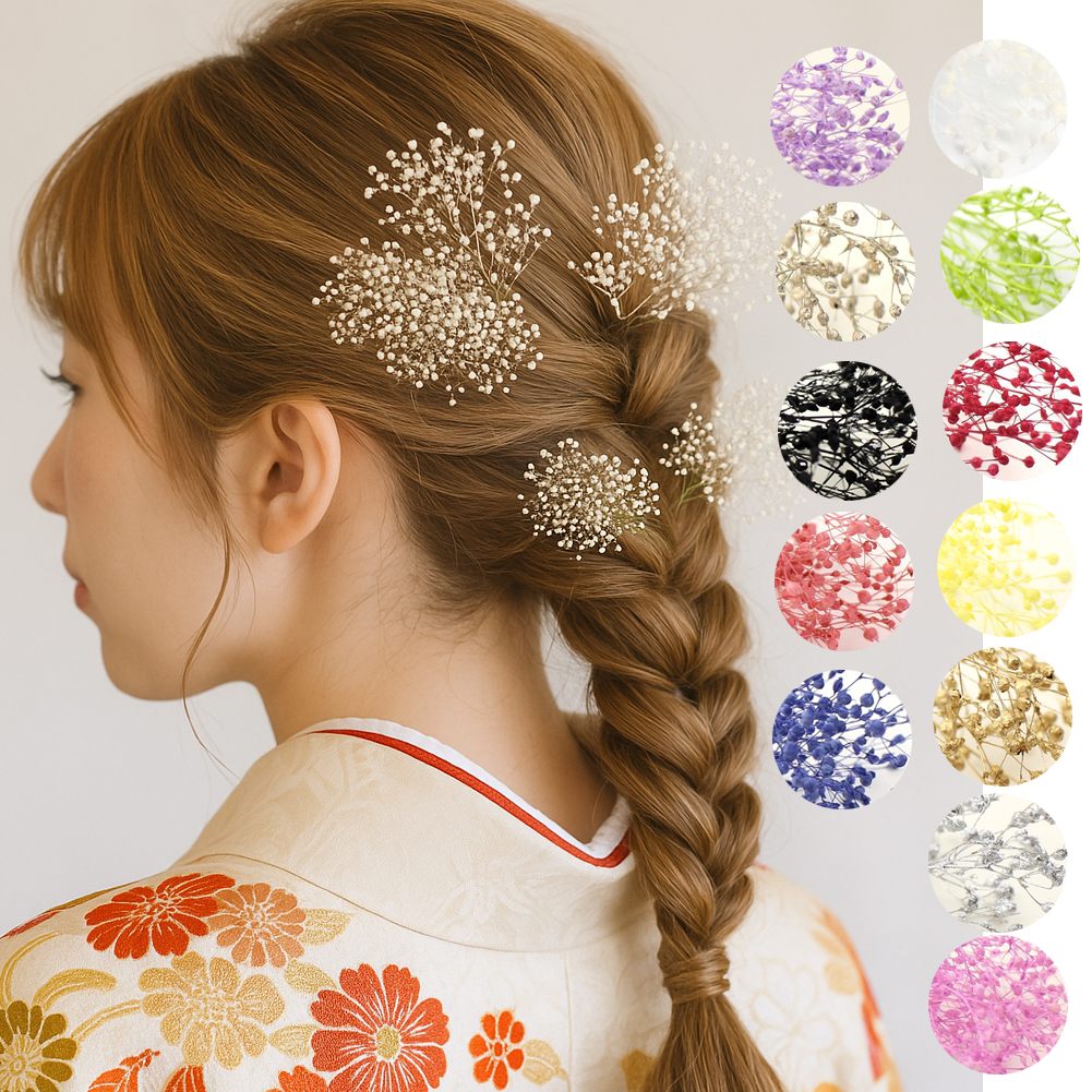 【当日発送】髪飾り かすみ草単品 バラ売り 1本 成人式 卒業式 カスミ草 金 銀 花 赤 白 ゴールド シルバー ホワイト 紫 黄 ピンク オレンジ プリザーブドフラワー ドライフラワー 結婚式 前撮り 和装 ウェディング ブライダル 花嫁 色打掛 振袖 着物 袴 浴衣 青 緑 七五三