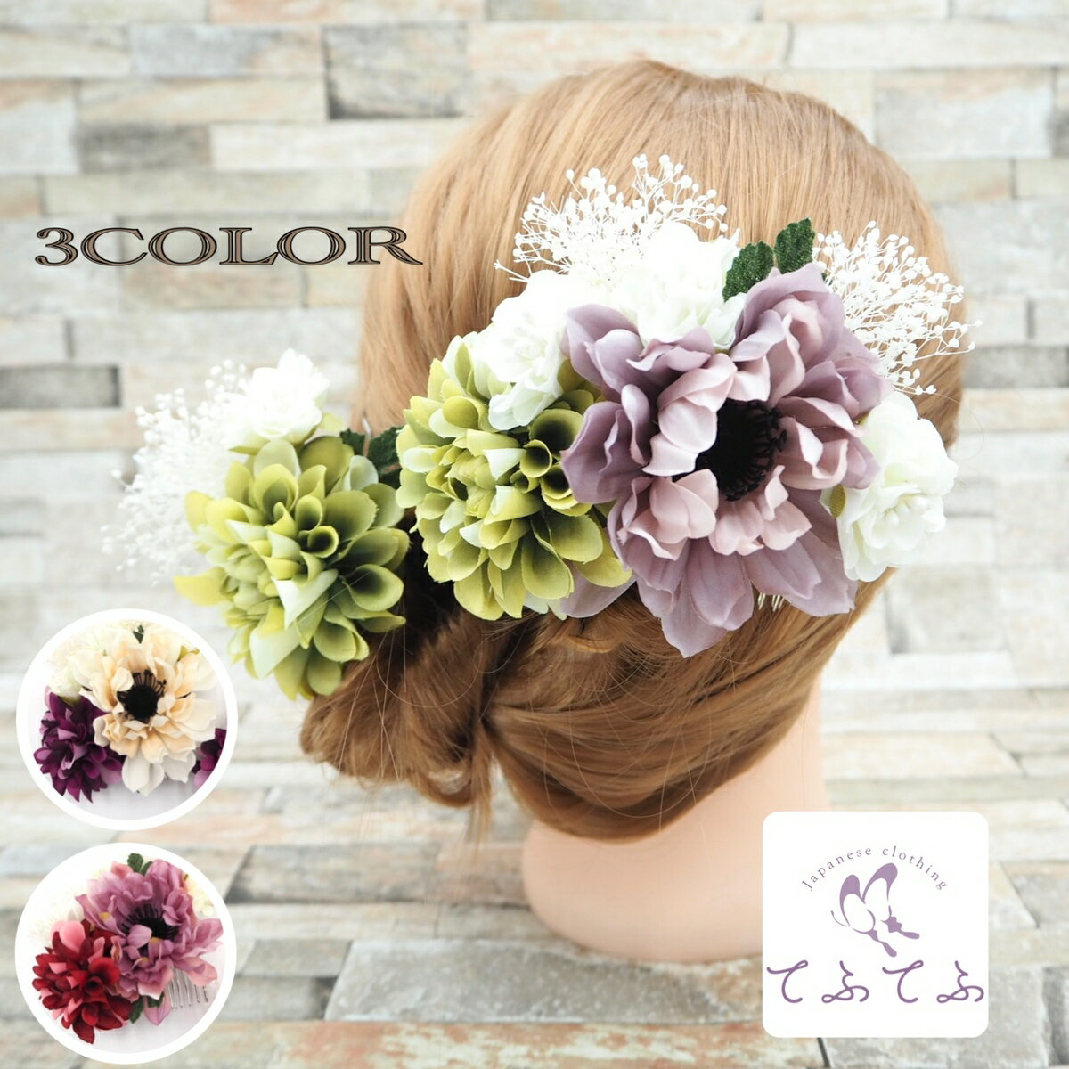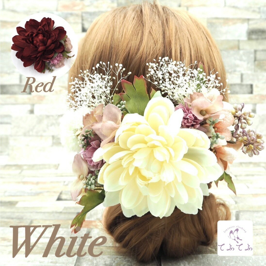 送料無料 髪飾り 浴衣 ドライフラワー 2点セット 赤 緑 白 紫 緑 成人式 結婚式 卒業式 卒園式 プリザーブドフラワー カスミソウ ダリア デイジー 花 花飾り 和装 ウエディング 振袖 着物 袴 ヘッドドレス