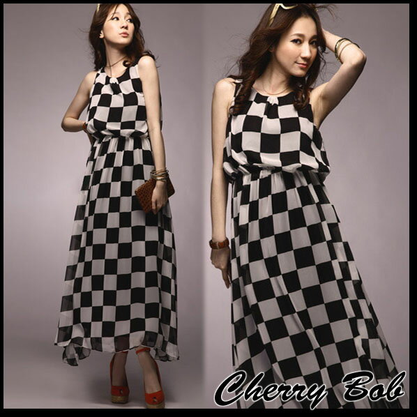 白黒バイカラーのブロックチェックプリントのシフォンマキシです。 ウエスト切り替えデザインの大人っぽいデザインになってます★ ふわっとしたフェミニンなシフォンで、お出かけ着にぴったり♪ ■サイズ:着丈118cm、バスト75〜90cm、裾周り95cm ■素材 :ポリエステル ■裏地あり