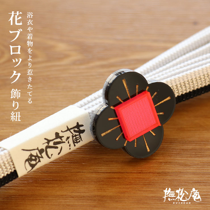 \BLACK FRIDAY開催中/ [ 三分紐 ・ 帯留め セット ] 撫松庵 三分紐 (正絹) 花ブロック(黒×赤/100-370-003-88)絹 ラメ 反射材 飾り紐 帯締め 帯〆 日本製 カジュアル 浴衣 着物 紬 小紋 和装小物 春夏秋冬 通年 シンプル (fj505)