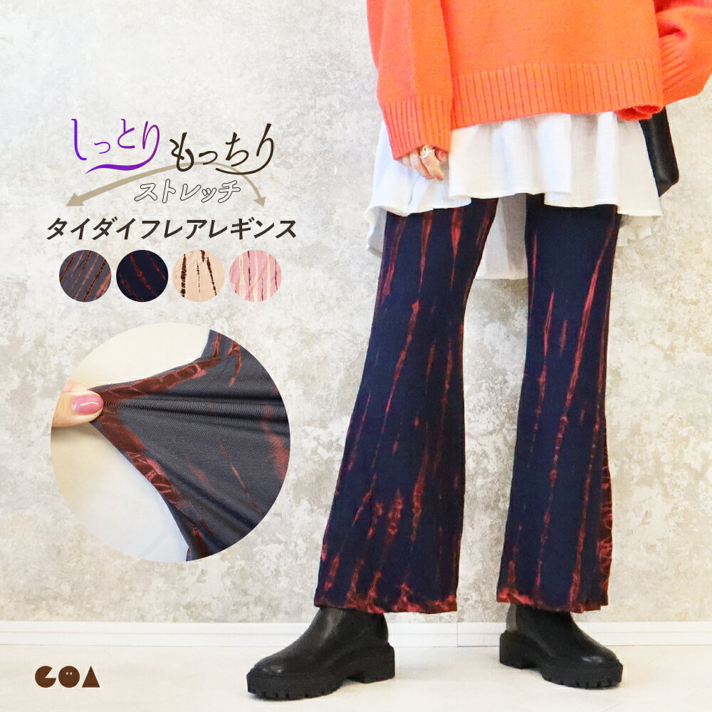 フレアパンツ 美脚パンツ セミフレア フレアレギンス レディース ボトムス 美脚ライン ブーツカット 春夏 薄手 タイダイ おしゃれ かわいい 脚長効果 大きいサイズ ゆったり ストレッチ 裾フレア フィット ロング きれいめ レーヨン *2 *y3-2t