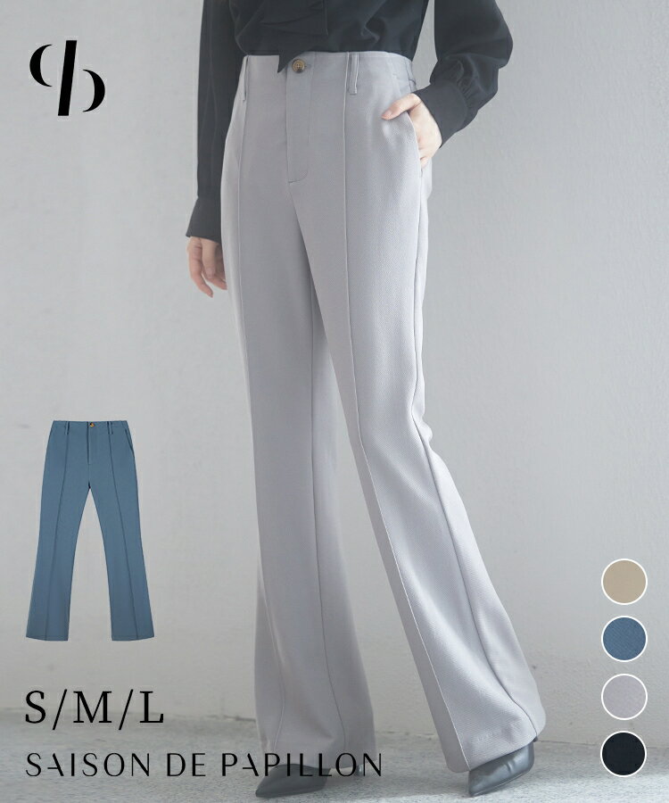 フレアパンツ 秋 パンツ レディース ベルボトム ストレッチパンツ イージーパンツ フルレングス きれいめ コバステッチ 脚長 スタイルアップ ツイル地 ハイライズ センターライン ウエストゴム SAISON DE PAPILLON sdp0019