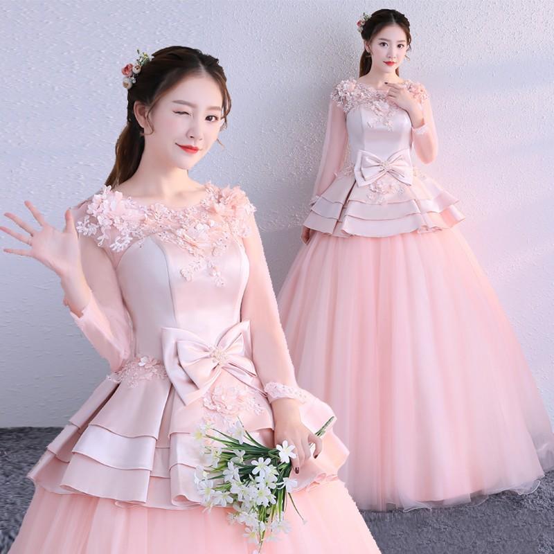 ウェディングドレス ウエディングドレス カラードレス ピンク 演奏会 安い ウエディング花嫁カラードレス 袖付きロングドレス 結婚式 イブニングドレス プリンセスラインドレス ステージ衣装 大きいサイズ 発表会 二次会 パーティードレス 披露宴 コンサート カクテルドレス
