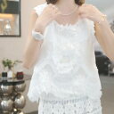 キャミソール タンクトップ 盛れる 涼しい 夏 Vネック レース レディース レース フック フラワー ヘビーデューティー キャミソール レディース 2025夏 スタイル ファッション ホワイト ノースリーブトップ