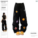 ゆったり パッチワーク パンツ レディース 大きいサイズ カラフルな 花の 刺繍が 施 女性用 オーバー オール 2025夏 ストリート ヘビーデューティー マルチ ポケット ワイド レッグ パンツ