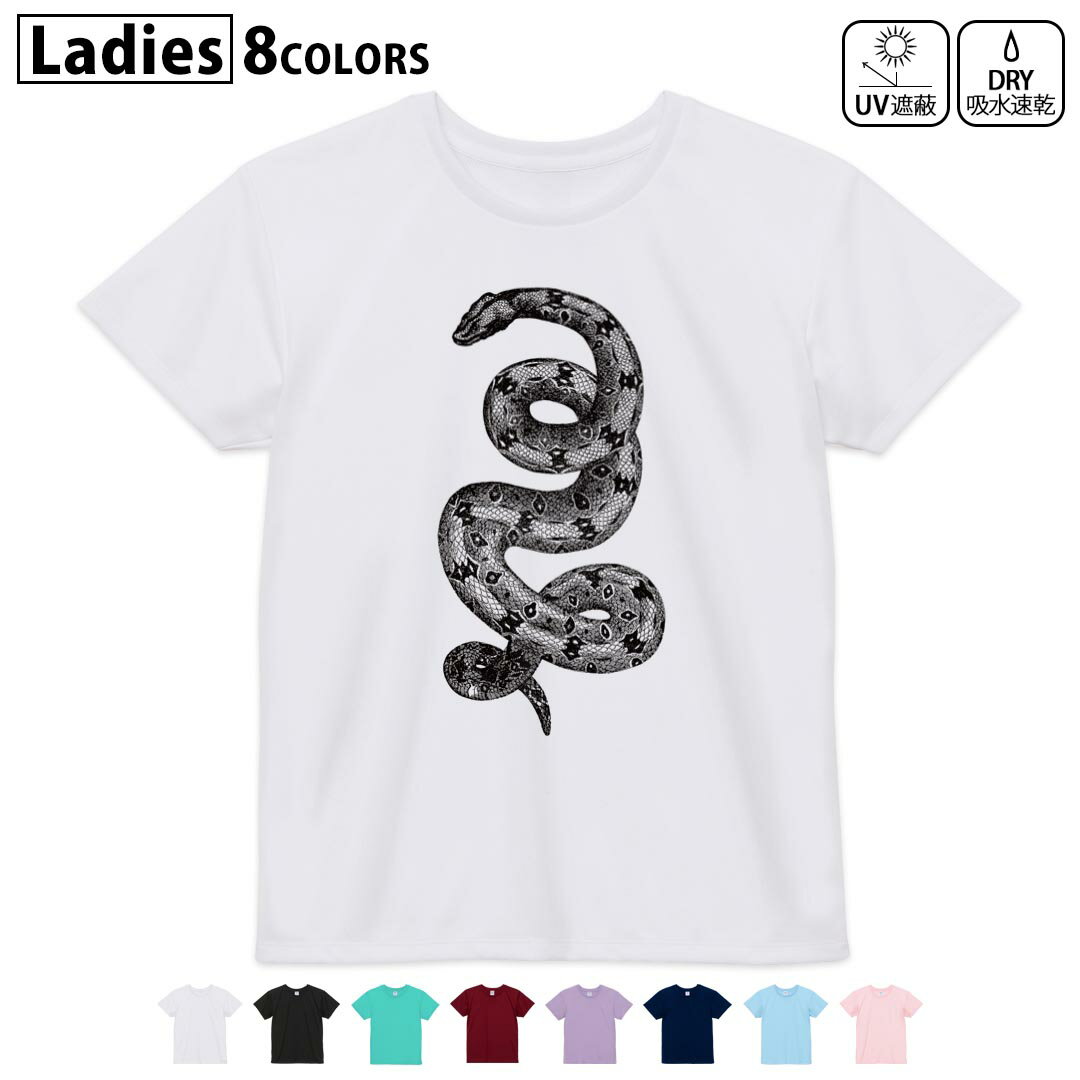 ドライTシャツ 吸水 速乾 DRY 選べる8カラー tシャツ レディース スポーツ ゆったり UV対策 デザイン M L Tシャツ ティーシャツ T shirt017492 リアル 蛇 ヘビ