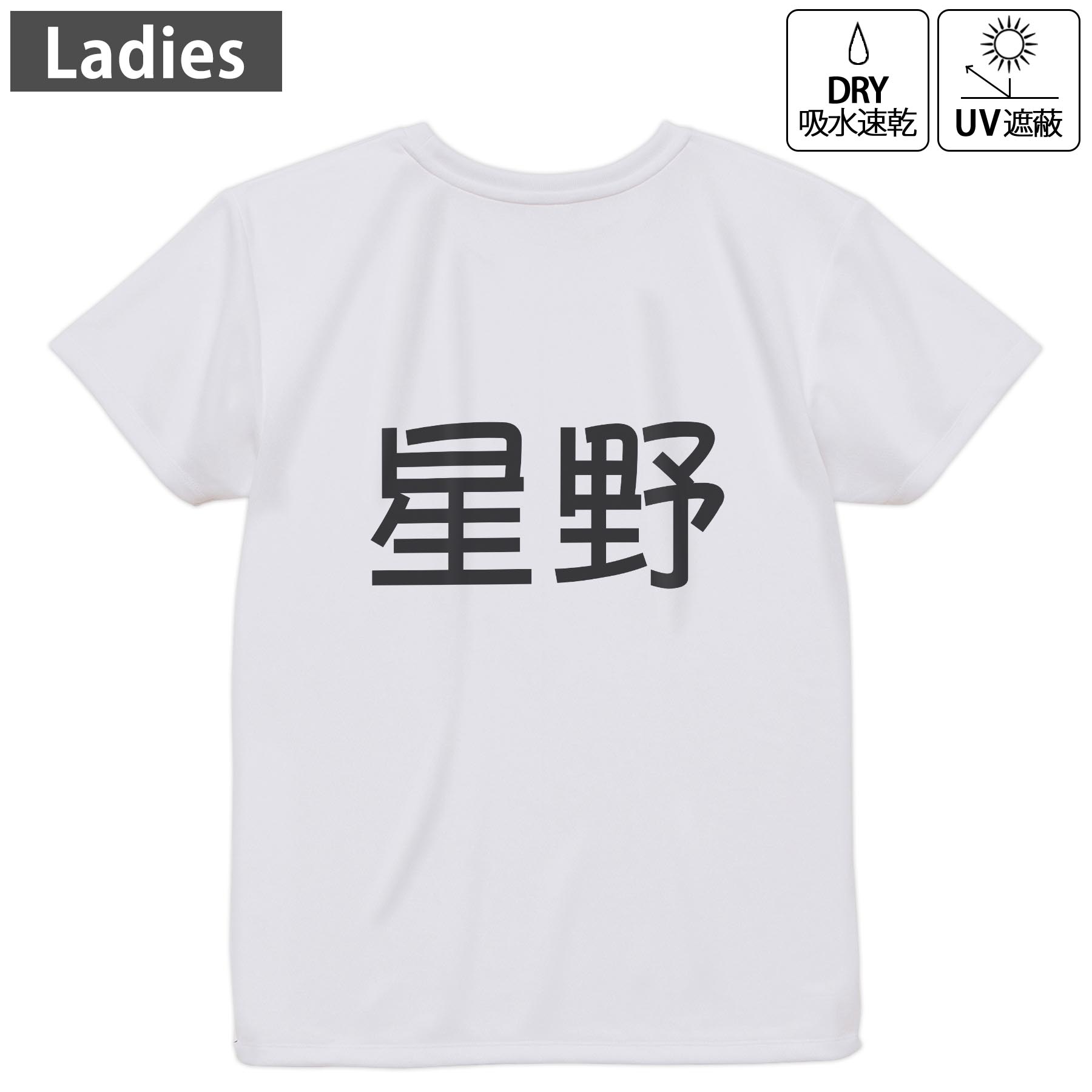 レディース ドライバックプリントTシャツ ホワイト 半袖 4.1オンス ジム トレーニング スポーツ 運動会 ドライアスレチック UVカット 紫外線遮蔽 吸水速乾 デザイン Tshirt M L 021144 苗字 名前 星野