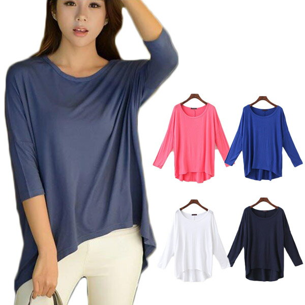 送料無料 長袖Tシャツ 送料無料 お試しブラウス トップス カブリシャツ レディース 前後差 無地 シンプル トップス ポイント消化