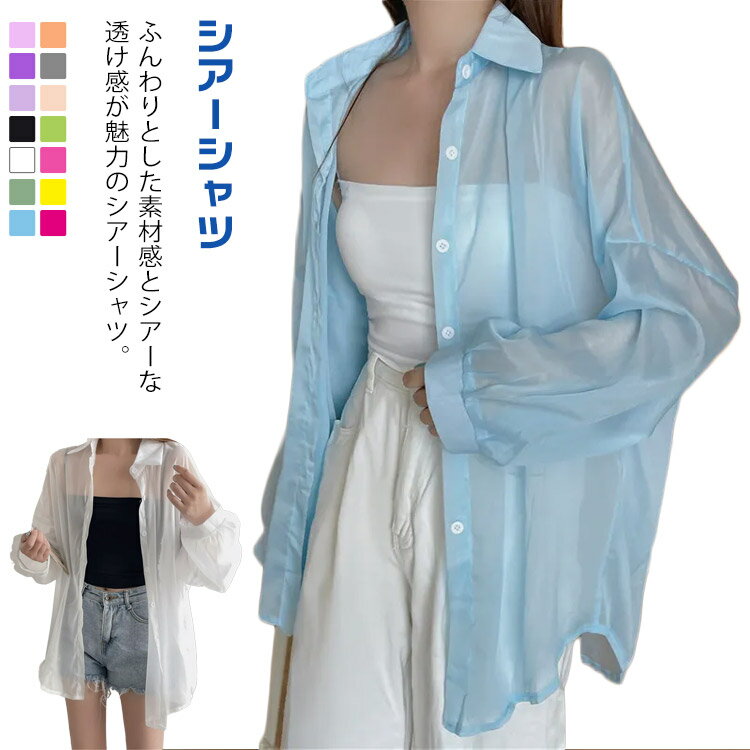 シアーシャツ 羽織り 可愛い 長袖 シャツ レディース カーディガン シアーシャツ 透け感 ブラウス 春 冷房対策 体型カバー トップス シースルシャツ UV対策 夏 秋 大きいサイズ ゆったり ビッグシャツ サマーシャツ