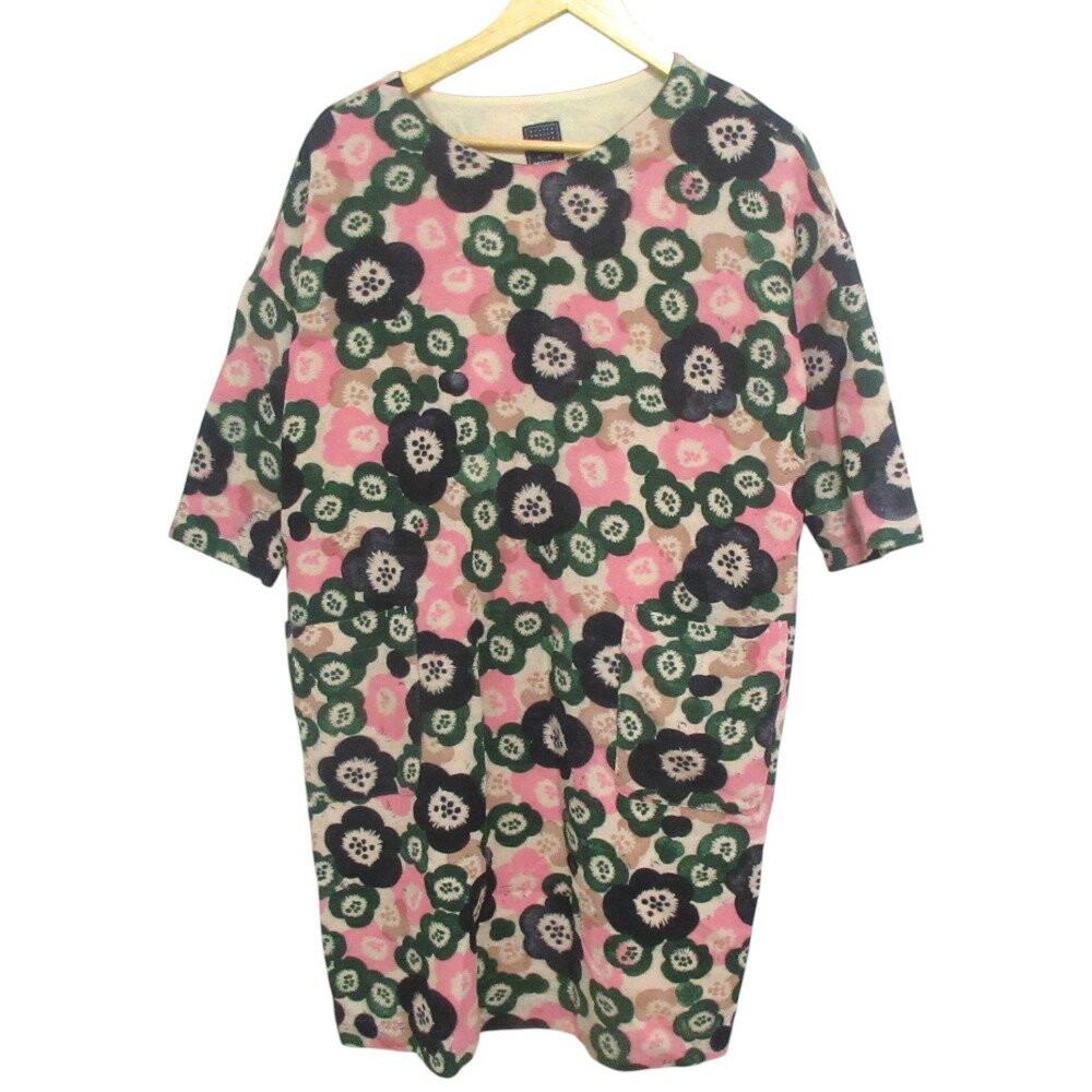 【中古】 美品 mina perhonen ミナペルホネン millefiori ウール100% フラワープリント 七分袖 ひざ丈ワンピース サイズ36 ベージュ系 レディース Luxs ブランド古着のリュクス