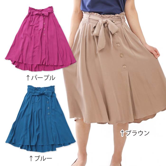 ベルトにリボンが付いた、レーヨン100%のスカート!動くたびにゆれる生地のドレープがとても綺麗です♪ ■カラー展開:ブラウン/パープル/ブルー ※左右にポケットがあります。 ※パープルはピンク味があります。 ※風合いの良いレーヨン100%素材ですが、素材特性上、水洗いではしわや縮みが発生いたします。お洗濯につきましてはクリーニングをおすすめします。 ※画面上の色はブラウザや設定により、実物とは異なる場合がございます。ご了承の上ご注文下さい。 アイテム:スカート サイズ:フリ− 素材:レーヨン100% テンセルツイル ■商品サイズ(商品の仕上がり寸法です) 表示(cm)フリ− ウエスト幅33 スカート丈67 メーカー希望小売価格はメーカーサイトに基づいて掲載しています。 大人,女性,リボン,フレア,スカート,お出かけ,旅行,お泊り,おしゃれ,買い物,参観日,ママ,おそろい,リンク,コーデ,学校,保育園,幼稚園,夏,かわいい,発表会,お楽しみ会,お誕生日会,無地,シンプル,リボン,フリル,カラフル,フレアスカート,ボトム,婦人服,レディース