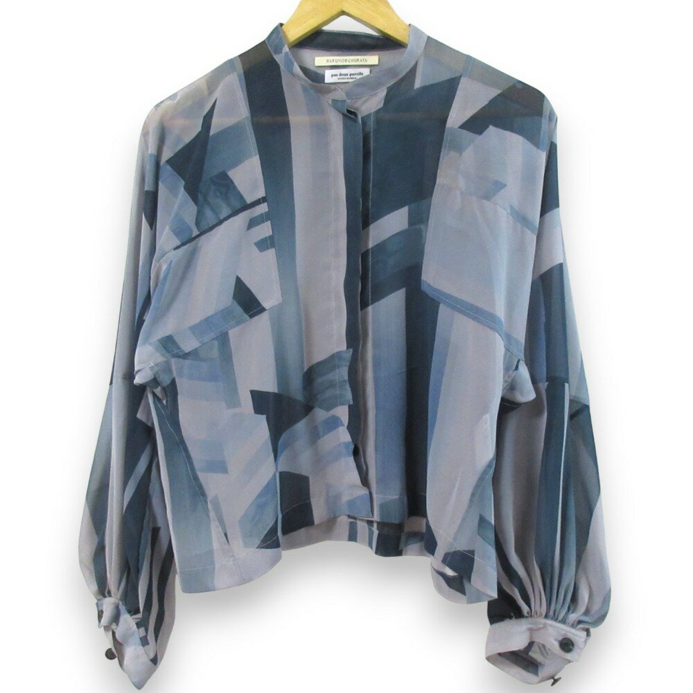 【中古】美品 HARUNOBUMURATA ハルノブムラタ HAYES by KYOTO MARBLE シアーパフスリーブブラウス HM25S712 サイズ34 ブルー系 レディース Luxs ブランド古着のリュクス