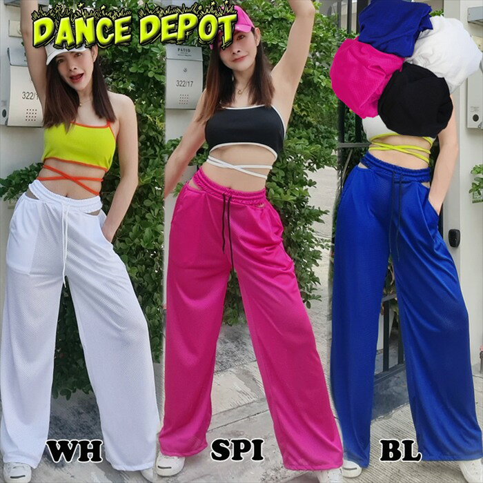 ダンス衣装/キッズ衣装/Girlsファッションなら・・・Dance Depot(ダンスデポ) ~ サイドオープンの個性的デザイン+光沢感が可愛いゆったりワイドパンツ! 動きやすさ×可愛さ×個性を全部叶える! ~ステージ衣装・ダンス練習用・イベント・発表会・普段着にも大活躍! 軽量&さらさら素材でとにかく動きやすい、ロング丈のゆったりワイドパンツです。 ◆商品特徴 ● ゆったりロング丈パンツ 体型を選ばないリラックス美シルエット。すっきり見せ、脚長効果も◎ ● 軽量&速乾のサラサラ素材 汗をかくダンス・スポーツ時にも快適! 柔らかくストレスフリーな着心地。 速乾×軽量で踊りやすい。 ● ストレッチ・伸縮素材 動きやすさMAX! アクティブな動きを妨げないから、ダンス・運動に最適。 ● ウエストゴム+紐でサイズ調整OK フィット感を自分サイズに調整可能。 体型問わずフィット ● サイドオープンの個性的デザイン 周りと差がつく"魅せパンツ"。衣装にも映える! ● メッシュ風の軽量素材 動くたびに軽やか。通気性も◎ 暑いシーンにも快適 ◆カラー(全4色) 映える色で存在感UP!選べる4カラー。ダンスがもっと楽しくなる! ・BK:ブラック(黒):光沢なしでスタイリッシュ ・WH:ホワイト(白):光沢ありで爽やか&映える ・BL:ブルー(青):光沢ありでステージ映え抜群 ・SPI:ショッキングピンク:光沢ありで圧倒的存在感 ◆こんなシーンにおすすめ! ・ダンス衣装(HIPHOP/K-POP/ガールズダンス) ・キッズ発表会・ジュニアダンス衣装 ・チーム衣装・イベントステージ衣装 ・レッスン着・練習着 ・普段着・ストリートカジュアルにも◎ サイズ ウエスト 前股上 後股上 股下 渡り幅 裾幅 レディースフリー 約60~80cm 約34cm 約37cm 約69cm 約31cm 約27cm 【素 材】ポリエステル 100% (伸縮素材・柔らか・着心地良) 【コーディネート詳細】▼モデル:身長約160cm/B80cm/W57cm/H80cm<BK,WH,BL着用>