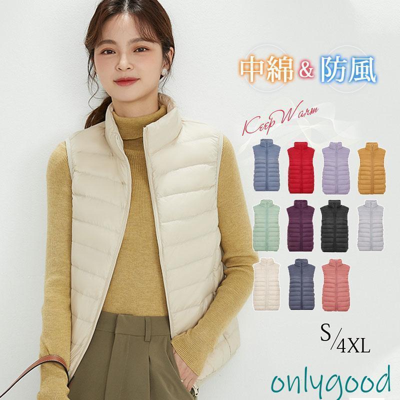 ダウンベスト ベスト レディース 秋冬 ライトアウター 立ち襟 きれいめ 防寒ベスト 着痩せ カジュアル シンプル 通勤 通学 細身