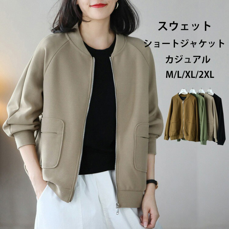 ジャケット ショート丈 レディース スウェット 春 秋 アウター 長袖 立ち襟 コート ショートジャケット 前開き ポケット付き トップス パーカー 無地 カーディガン 体型カバー ゆったり 春コート オフィス オシャレ ライトアウター カジュアル 通勤 春秋 ブルゾン羽織り