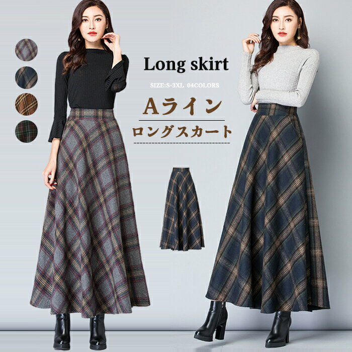 ロングスカート 秋冬 チェック柄 スカート ロング ミモレ丈 レディース Aライン 大きいサイズ フレアスカート ギャザースカート プリーツスカート ボトムス 秋 秋物 ロングスカート シンプル きれいめ ハイウエスト 大人 可愛い