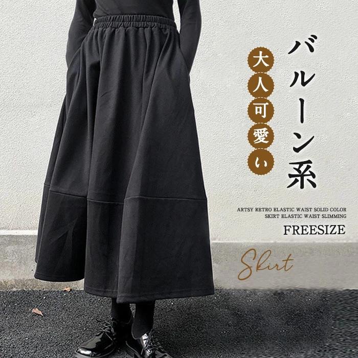 スカート ロング レディース 黒 大きいサイズ バルーンスカート ボトムス 厚手 秋 ロングスカート ミモレ丈 シンプル きれいめ 大人可愛い ブラック カジュアル 送料無料 秋冬 ロング ワイド バルーン 秋物 マキシ丈 冬 通勤 日常 ゆったり 無地 体型カバー ウェストゴム