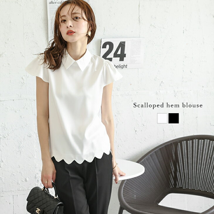 【半額クーポン対象】フレンチスリーブ パフ袖 レギュラーカラー サテン スカラップ トップス ブラウス 上品 キレイめ 大人かわいい レディース おしゃれ フリーサイズ メール便 2025秋冬新作【atpss24-298】【即納:1-5営業日】【送料無料】ユ込2